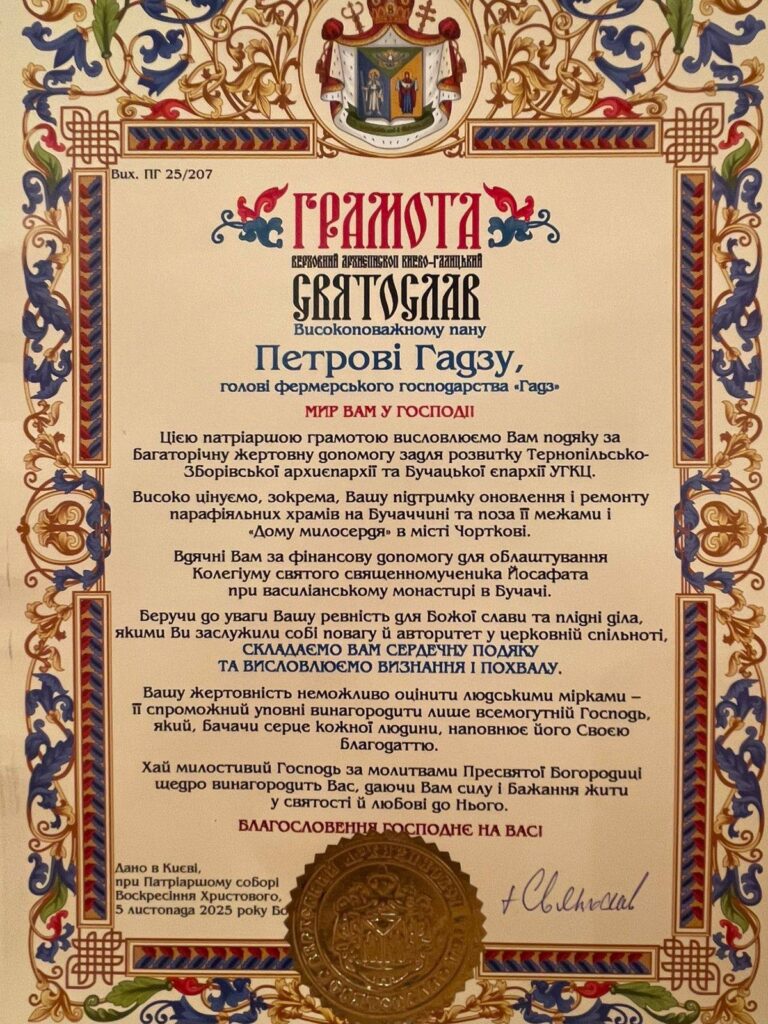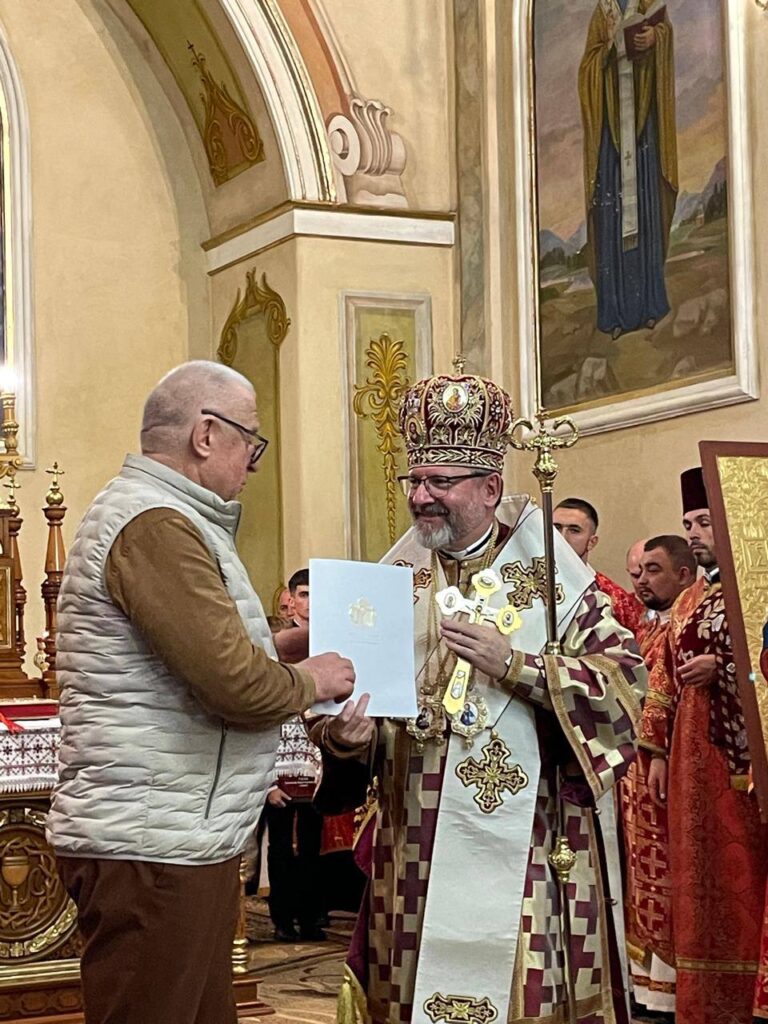 Після завершення літургії Глава УГКЦ вручив подяку бучацькому підприємцю та меценату Петру Гадзу. Патріарх відзначив багаторічну підтримку церкви та ліцею. Навзаєм Петро Іванович подякував Блаженнішому Святославу за таку високу відзнаку та анонсував ще одну офіру для завершення ремонтних робіт у церкві Чесного Хреста Господнього (мармур для оздоблення підлоги храму). Також незабаром ліцеїсти отримають фортепіано, котре допоможе у освітньому, виховному та духовному житті навчального закладу.