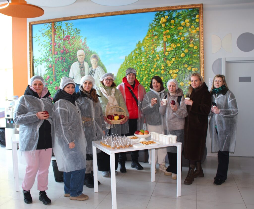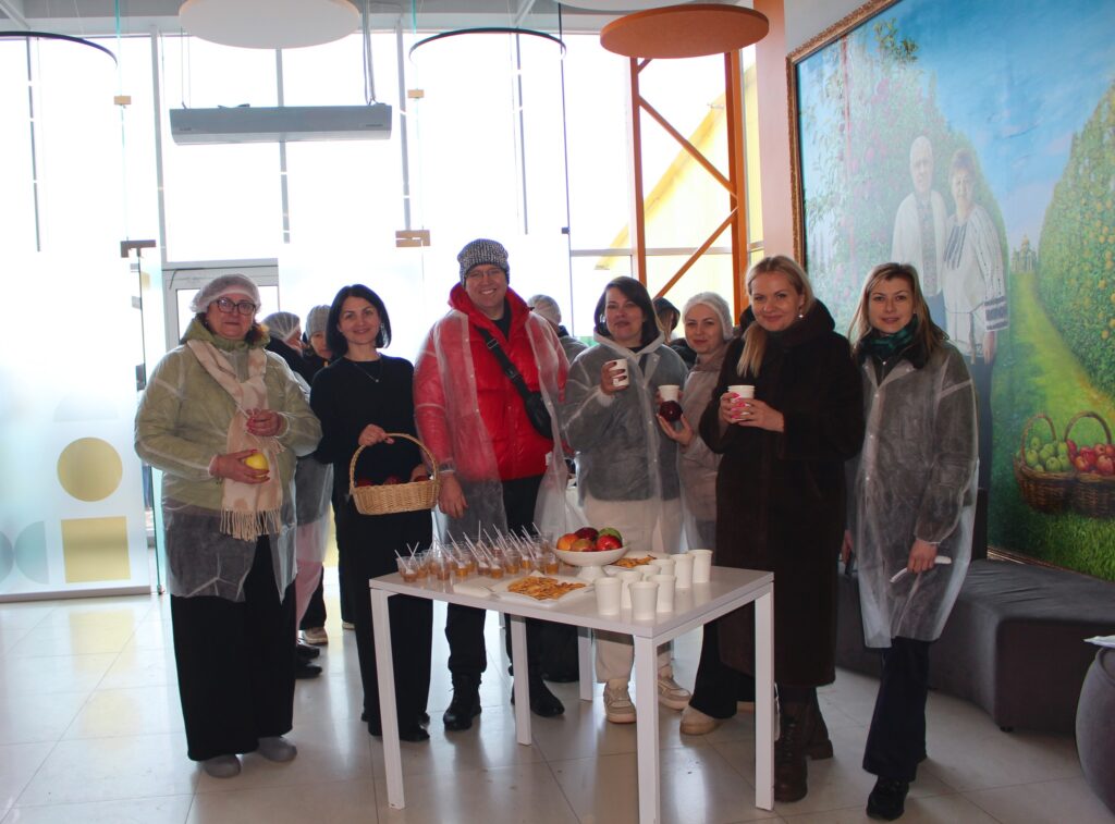 Завершенням візиту стала дегустація готової продукції безпосередньо на заводі — фруктових та овочевих пюре, соків і яблучних чіпсів.