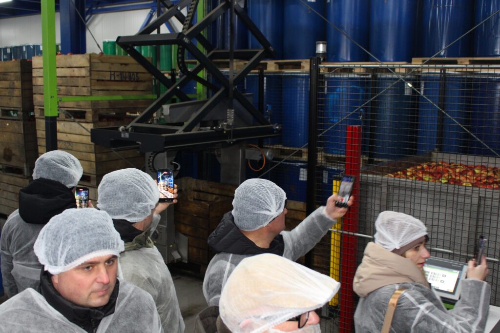 Гості відвідали два інтенсивні сади яблуні, ознайомилися з особливостями вирощування, системами догляду та організацією виробничих процесів у полі. Також учасники побували в розсаднику, виробничих цехах і сховищах, побачили сучасну техніку в роботі, сортувальні лінії та процес фасування продукції.