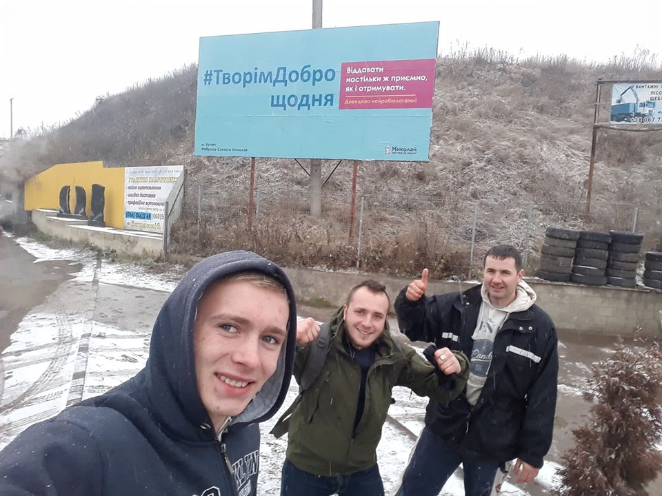 Дякуємо усім людям, які спричинилися до реалізації: дизайнеру Сергію, пані Світлані за бігборд, пану Віктору за комунікацію, міській раді та ККП за техніку, хлопцям Олегу, Володі та Миколі за встановлення.