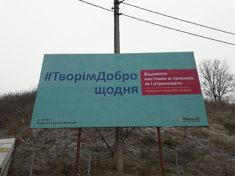 Ось такий бігборд з’явився в Бучачі біля автостанції з великими літерами #ТворімДоброЩодня.