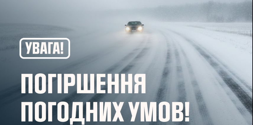 Очікується збільшення висоти снігового покриву, погіршення видимості та ожеледиця на дорогах.