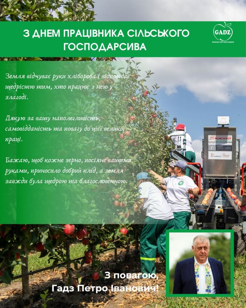 Вітання із Днем працівника сільського господарства від Гадза П.І.